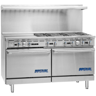 Imperial Range Pro Series IR-6-G24NG 60″ Natural Gas 6 Burner Range with 24″ Griddle and 2 Standard Ovens – 302,000 BTU