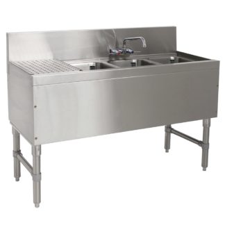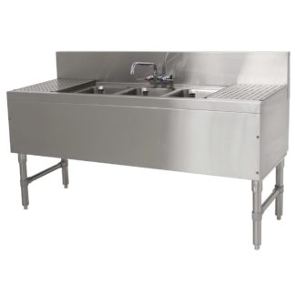 Krowne CS-1860 60″ 3 Compartment Sink w/ 10″W x 14″L Bowl, 10″ Deep
