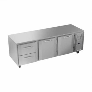 Victory Refrigeration VURD72HC-2 72” 3 Section Undercounter Refrigerator with 2 Right Hinged Solid Doors 2 Drawers and Side / Rear Breathing Compressor