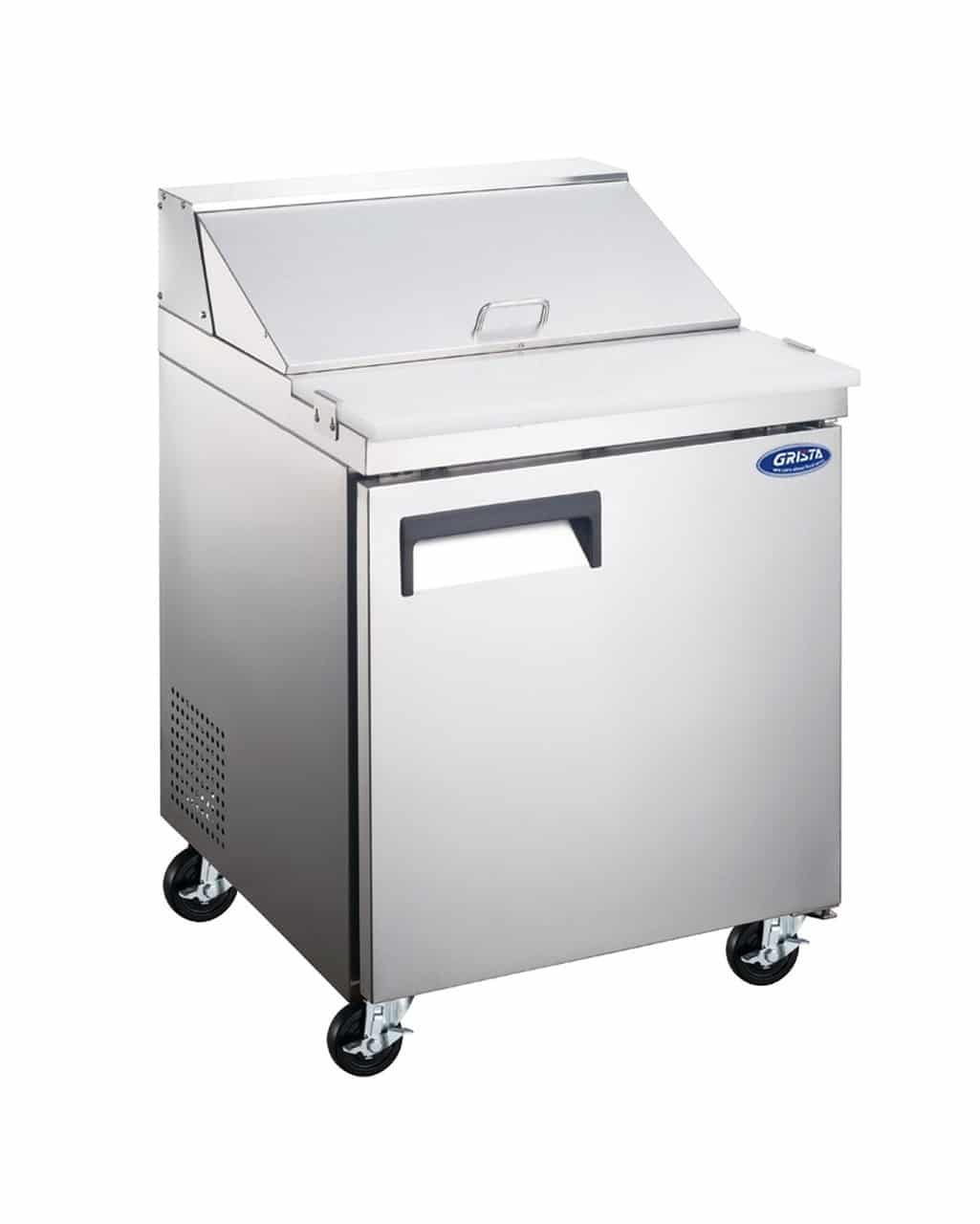 Grista’s Salad/Sandwich Prep Tables are constructed of heavy duty stainless steel them strong and durable enough to survive in any kitchen environment. Store all of your condiments, meats and vegetables in the cold topping area that can hold a variety of different sized food pans up to 6″ deep.
