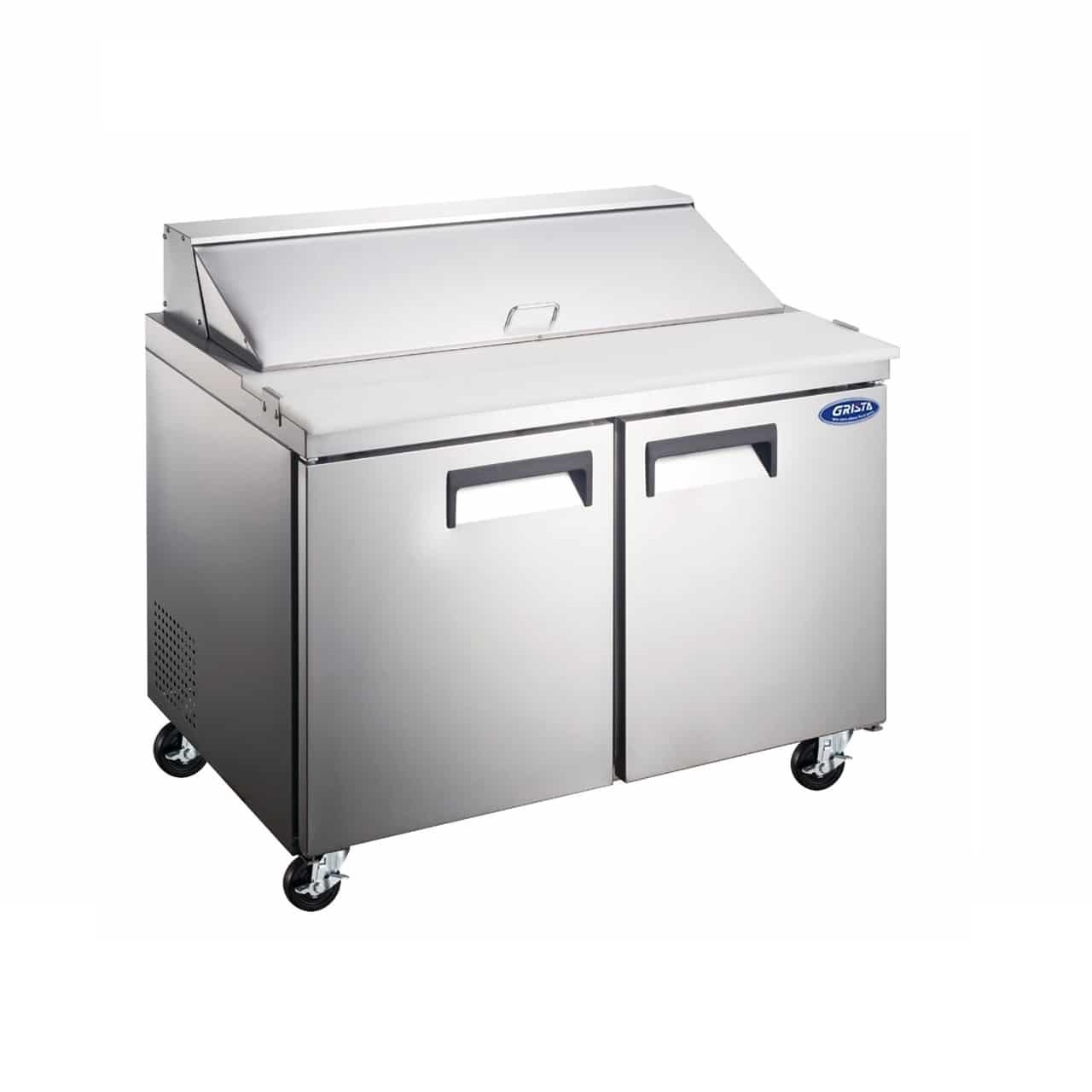 Grista’s Salad/Sandwich Prep Tables are constructed of heavy duty stainless steel them strong and durable enough to survive in any kitchen environment. Store all of your condiments, meats and vegetables in the cold topping area that can hold a variety of different sized food pans up to 6″ deep.