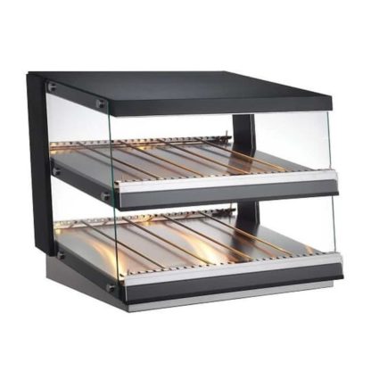 Safely and stylishly display hot wrapped foods such as pizzas, burgers and more with this 85 Liter Hot Food Display. This merchandiser utilizes 1160 watts of heating power to keep food at a safe, ready-to-serve temperature so your customers can quickly and conveniently grab something to eat. Independent heat and light controls on each shelf allow for specific display and holding conditions for different foods, giving increased marketing potential. Built for durability, this merchandiser utilizes a stainless steel frame with tempered glass sides for maximum visibility. It also includes adjustable divider rods to quickly and easily separate your most popular foods for display.