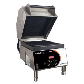 Sandwich Grill, single, countertop, electric, 8-1/2″ x 9-1/4″ grill surface, cast iron grooved plates, adjustable thermostat control switch 120°F to 570°F, includes oil tray & cleaning brush, stainless steel, 120v/60/1-ph, 1750 watts, 14.5 amps, NEMA 5-15P, NSF, CE