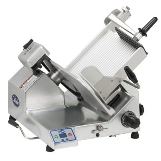 To expedite thorough cleaning, the Adcraft SL-12L SL series slicer’s carriage is removable. It’s mounted on nonslip rubber feet to keep the unit securely in place during use. Made of Italian carbon steel, its 12-inch-diameter blade resists rusting and remains sharp over time. This unit is equipped with a built-in sharpener for convenience.
