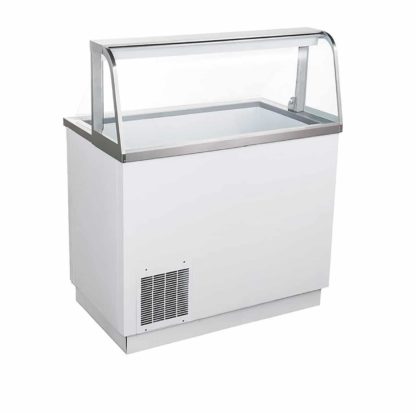 U-Star’s Deluxe Ice Cream Dipping Cabinets are perfect for ice cream shops, candy stores, dessert bars, and cafeterias. The white design showcase is illuminated with LED lighting, displaying colorful flavors and samples. The glass canopy promotes product visibility, while preventing contamination. The unit features a stainless-steel storage shelf on top, with a curved glass viewing window. The frozen storage space beneath the display is for holding tubs of back-up flavors. These models are ETL Listed and ETL Sanitation. They are backed with a 1 year warranty on parts and labor and a 5 year warranty on the compressor.