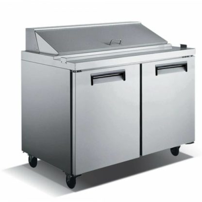 U-Star’s salad/sandwich prep tables are constructed of heavy duty stainless steel both inside and out making them strong and durable enough to survive in any kitchen environment. Store all of your condiments, meats and vegetables in the cold topping area that can hold a variety of different sized food pans up to 6″ deep. The hinged insulated cover keeps the food items cold when not in service. Store additional items below in the cabinet for quick access when needed. All salad/sandwich prep tables come with 6″ casters, plastic coated wire shelving and a 3/4″ thick polyethylene cutting board. The front LED readout makes it easy to see the interior temperature. These models are ETL Listed and ETL Sanitation. They are backed with a 1 year warranty on parts and labor and a 5 year warranty on the compressor.