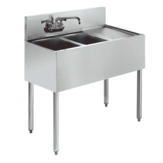 Challenger Underbar Work Board Sink Unit, with 2 sink compartment, 24″ long, 21″ wide, 10″ deep, 2-3/4″ deck, 4″ splash, stainless finish with black powder coated legs, with deck mounted faucet