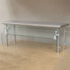 Sleek Shield Food Shield, multi-use (self-service or cafeteria style) (Patent Pending), 132″W x 12″D x 18″H, with stainless steel top shelf, 3/8″ thick heat tempered glass front & 1/4″ thick side panels (side panels 18″ deep to meet NSF requirements), equipped with Chamber Lock technology fixed to upright legs, allowing rotation in 15 degree intervals, includes: (2) additional center support legs