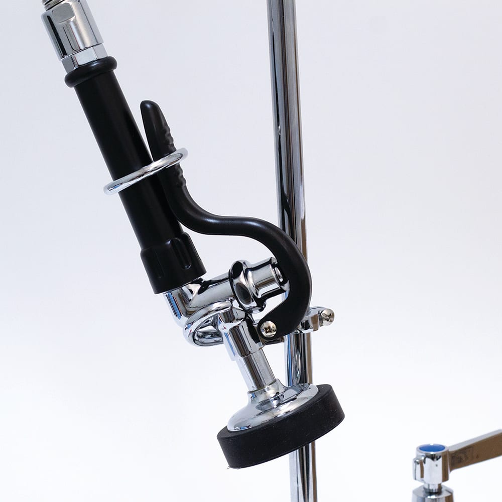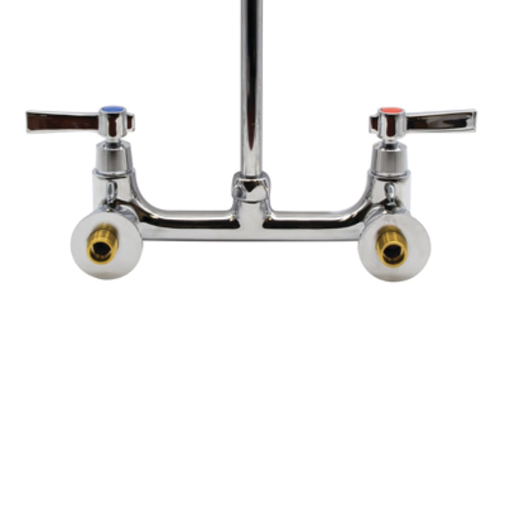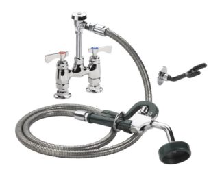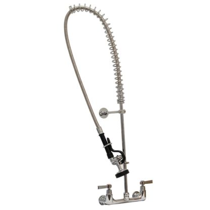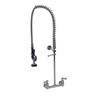 Heavy Duty Pre-Rinse Faucet, 8″ OC splash-mounted, includes: spray valve & hose, riser, wall bracket, overhead spring, lead free