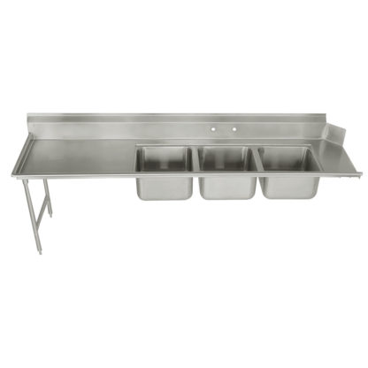 Dishtable with 3-compartment, Sink, (3) 20″ x 20″ x 12″ bowls, 16 gauge 304 series stainless steel top, stainless steel legs & f-b crossrails, stainless steel bullet feet, 39″ left drainboard, bowls are located 12″ from machine, NSF (must verify machine to make sure the control box does not interfere)