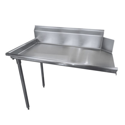 Dishtable, clean, straight design, right-to-left operation, 10-1/2″H backsplash, 3″ rolled front & side rims, stainless steel legs & crossrails, 47″W x 30″D x 34″H, 14/304 stainless steel