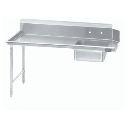 The Advance Tabco DTS-S70-84L soil dishtable holds dirty dishes on the left side of a warewasher, making it perfect for left-to-right washing operations. It has a pre-rinse sink for preparing dirty dishes for the washing process. This sink is 20 inches long by 20 inches wide, and messes are contained to the top of the unit with its large backsplash. Constructed of durable stainless steel, the top resists corrosion, is easy to clean, and is built for commercial applications. To provide additional strength, the Advance Tabco DTS-S70-84L soil dishtable is all TIG welded with stainless steel legs and feet, which are designed to stabilize the unit on uneven surfaces.