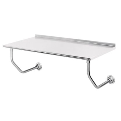 Table, wall-mount, 24″ wide, 14 gauge 304 series stainless steel top, 48″ long, rolled rim, 1-1/2″ rear backsplash, NSF