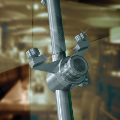 Sleek Food Shield, cafeteria style, 12″ x 84″, 18″ tall with stainless steel top shelf, 1/4″ heat tempered glass front & side panels (side panels 18″ deep to meet NSF requirements), equipped with Chamber Lock technology fixed to upright legs, allowing rotation in 15 degree intervals (Sleek shield patent pending)