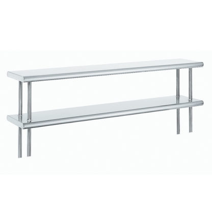 Shelf, table mounted, double deck with rear turn up, 12″ wide, 84″ long, 18 gauge 430 series stainless steel, not adjustable, old style