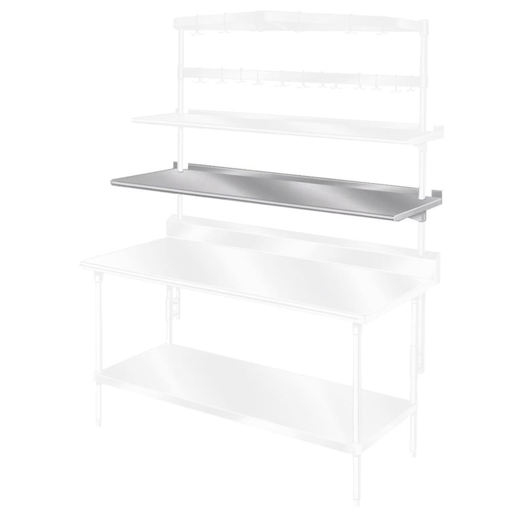Shelf, table mounted, single deck, 18″ wide, 132″ long, stainless steel, uprights of shelf, splash mounted