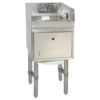 Underbar Basics Hand Sink, free standing, 15″W x 21″D x 32-7/8″H OA, 9″W x 9″D x 4″ deep sink bowl, 4″H back & sidesplashes, includes: 4″ OC deck mounted faucet with 6″ swivel spout, soap dispenser & c-fold towel dispenser, 300 series stainless steel construction, 18 gauge galvanized cross braced legs with adjustable bullet feet, NSF