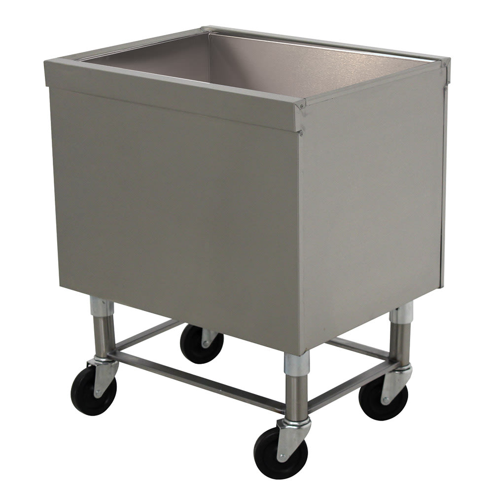Underbar Basics Ice Bin, portable, insulated, 30″W x 18-3/4″D x 29″H, 16″ deep, 127 lbs. ice capacity, 1″ center drain with shut off valve, stainless construction, stainless steel legs with 5″ caster, NSF