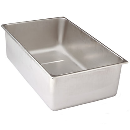The Advance Tabco SP-S spillage pan is larger than a standard full-size food pan because it’s designed to hold that pan in a steam table. It’s intended to be filled with water so when the steam table element heats it, it can steam product in the food pan. Because the pan is made of stainless steel, it’s heavy duty and easy to clean.
