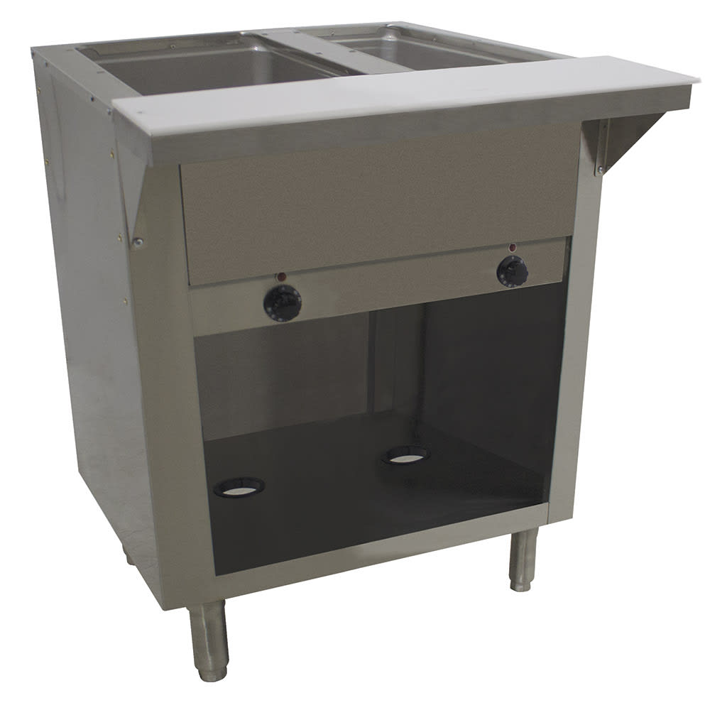 Triumph Hot Food Table, electric, 31.81 inches W, (2) 12″ x 20″ sealed hot food wells with drains, wet or dry operation, 1″ poly cutting board, individual infinite controls, enclosed base, stainless steel construction, 6′ cord, 1PH, 120V