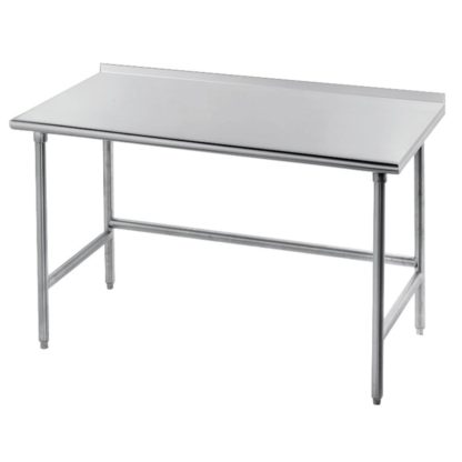 Work Table, 24″W x 30″D, with turned up edge at rear, with stainless steel legs, side & rear stainless steel crossrails, 14 gauge 304 series stainless steel top, 1-1/2″ turn up, stainless steel bullet feet