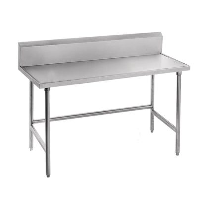 Work Table, 24″ wide top, splash at rear only, 84″ long, with galvanized legs, side & rear crossrails, 16 gauge 304 series stainless steel top, 5″ backsplash