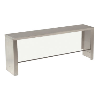 The Advance Tabco TSS-2 breath guard serving shelf has an acrylic shield that protects food in a bar from contamination. It’s designed to be placed in front of a hot or cold food bar with two wells and it has a single-sided construction. A removable, stainless steel shelf is included on top, so operators can keep flatware and napkins for customers in an accessible location.