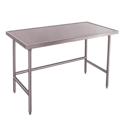 Work Table, 30″W x 24″D, without backsplash, side & rear stainless steel crossrails, 14 gauge 304 series stainless steel top, with countertop non drip edge, 16 gauge 304 series stainless steel legs, stainless steel bullet feet
