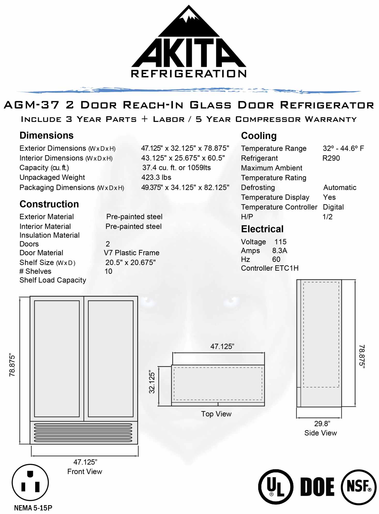 • 3 YEAR PARTS AND LABOR / 5 YEAR COMPRESSOR WARRANTY