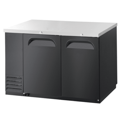Two-section, 59″W, side-mounted self-contained refrigeration, stainless steel top, (2) locking solid doors, (4) adjustable shelves, galvanized steel interior with stainless steel floor, black laminated exterior, R290 Hydrocarbon refrigerant, 3/8 HP, 115v/60/1-ph, 3.5 amps, cord with NEMA 5-15P, cETLus, NSF