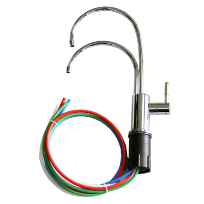 This is a high quality, single control, double spouted water ionizer faucet. This filtered water tap has no electric controls. The kits provide a faucet and all the parts needed for most installations. You will need a 110 volt outlet to power your ionizer.