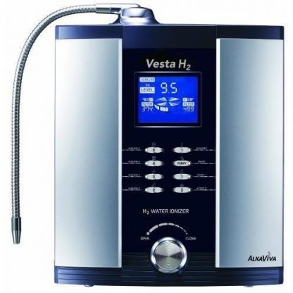 The AlkaViva Vesta H2 is an innovative 9-plate water ionizer with a new, advanced SMPS power supply, Smart-Design Electrodes, Auto-Adjust Power feature and DARC cleaning system. A futuristic Hydrogen Infusion Technology design optimizes performance, especially in the production of molecular hydrogen (H2.) The Vesta H2 performs especially well in –ORP and H2 production at lower drinkable levels of pH water. A high-performance standard, solid reliability, and beautiful packaging makes the Vesta H2 the new standard in the water ionizer industry.