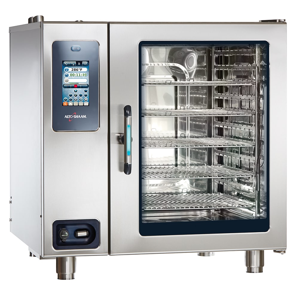 Suitable for high-volume use, the Alto-Shaam CTP10-20G Combitherm combi oven has a capacity of 22 full-size hotel pans, which it holds on non-tilt support rails. Because it’s constructed of stainless steel, it can withstand repeated use without rusting or denting. To retain heat and ensure safe operation, it features a CoolTouch triple-panel glass door.