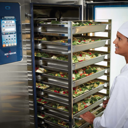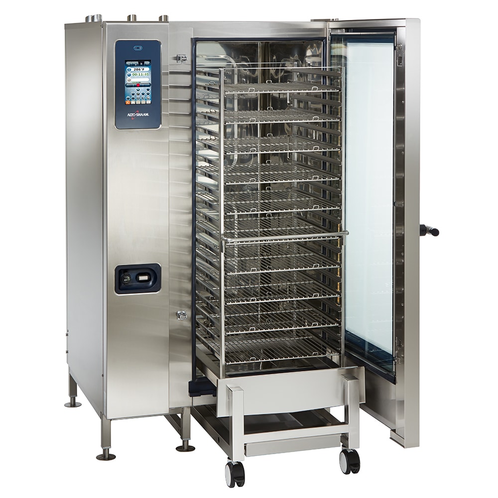 Combitherm CT PROformance Combi Oven/Steamer, electric, boiler-free, floor model with roll-in cart, (20) non-tilt support rails, capacity (20) 18″ x 26″ full size sheet or (40) 12″ x 20″ full size hotel pan (1/1 GN), PROtouch control with steam/convection/combi/retherm modes, single point removable probe, (2) power levels, (4) cooking modes, programmable cool-down, SafeVent steam venting, CombiClean PLUS with (5) cleaning levels, CoolTouch3 glass window, door hinged right, high efficiency LED lighting, stainless steel construction, seismic legs, EcoSmart, cULus, UL-EPH, ANSI/NSF 4, CE, IP X5, 208v/60/3ph