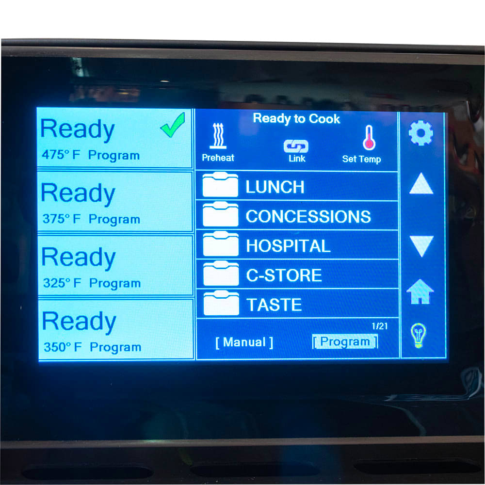 - Fan speed, temperature, and time are programmable on touchscreen controls
