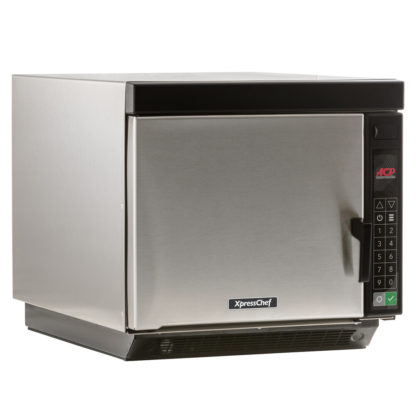 The Amana Commercial XpressChef 2c JET19V Jetwave is a commercial rapid cook oven that combines a powerful convection oven with 1900W of microwave heating to bake and brown appetizers, sandwiches, desserts, and par-baked pizza up to 10 times faster than traditional cooking methods! It can accommodate pizzas up to 12″ while boasting a compact construction that makes it ideal for wine bars, pubs, kiosks, supermarkets, country clubs, bakeries, cafes, convenience stores, and other operations where space is at a premium. The braille-integrated touch pad control panel offers simple control over 11 power levels, 100 programmable menu items, and four stage cooking options that reduce food prep time and waste while increasing consistency. A microwave only mode is also featured to give operators impressive flexibility and complete control over their products, while an integrated recirculating catalytic converter that filters grease and odor from the air to eliminate the need for a costly ventilation hood!