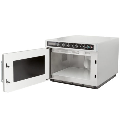 Packed with features to meet the needs of heavy-duty, high-volume foodservice operations, this stackable and powerful commercial microwave oven is essential for kiosks, cafes, and restaurants alike. 11 integrated power levels and an 1800W power output provide consistent, delicious results for frozen, refrigerated, and fresh foods, taking dishes from the freezer to the table in just minutes.