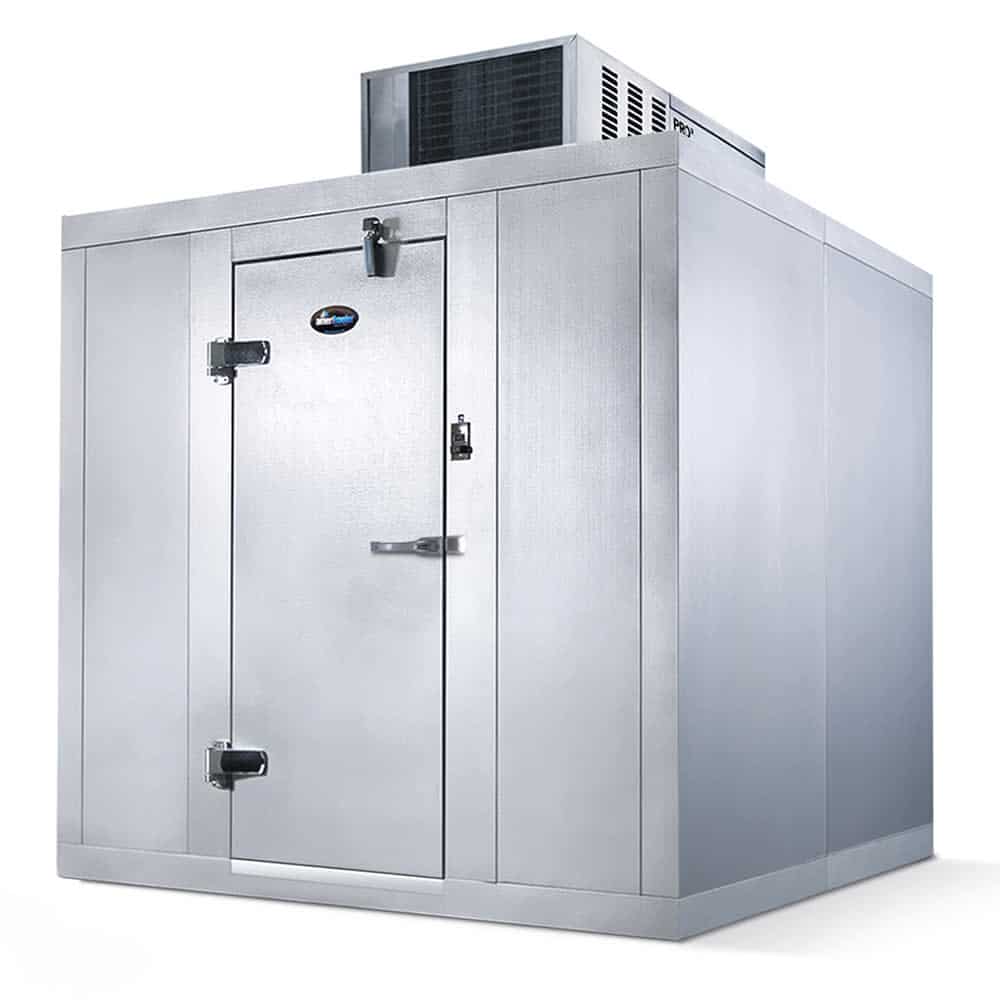 Quick Ship Indoor Walk-In Freezer, 7′-10″ W x 9′-9 1/4″ L x 7′-7″ H, With Floor, 4″ thick AK-XPS4 insulation providing R-29 for coolers & R-32 for freezers, 26 gauge stucco embossed corrosion resistant acrylic coated Acrylume on all interior & exterior surfaces, NSF aluminum floor rated at 600 Lbs./sq. ft. of uniformly distributed load, flush self-closing door, digital LED thermometer with pilot light switch, super cam-rise spring assisted hinges & door closer, -10°F, top mount, self-contained, indoor refrigeration, PT0069LBNEMSA, sized at 90°F ambient temperature, ships in 48 hours – subject to terms & conditions, UL, Made in USA.