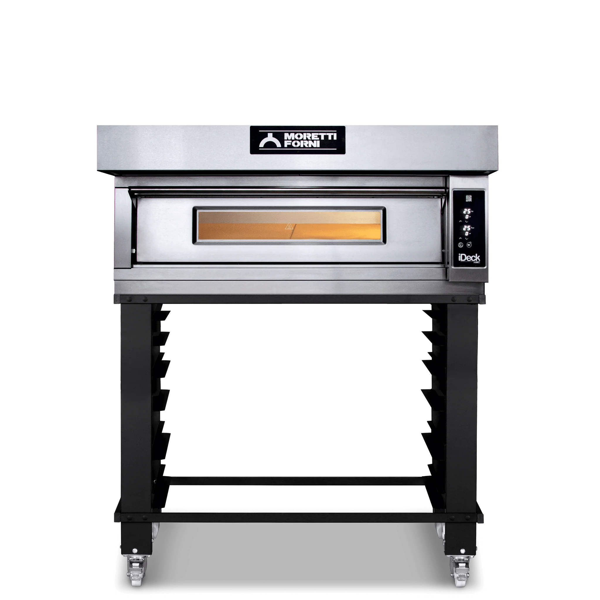 iDeck Pizza Oven, electric, (1) 41″W x 26″D x 5-1/2″H deck, (5) 12″ or (2) 18″ pizza, (2) 16″ x 22″ sheet pans capacity, 840°F max operating temperature, dual temp technology, electronic control, (1) stainless steel bottom-hinged door, halogen lighting, refractory brick baking surface, stainless steel external structure, 8.2kW, CE, Made in Italy