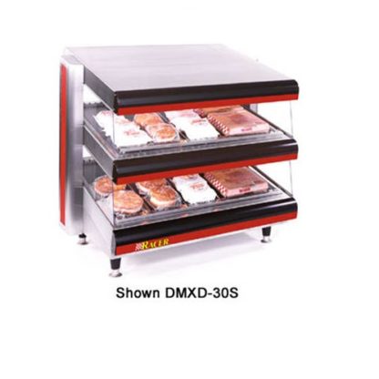 Racer Horizontal Open Air Heated Merchandiser, countertop, 30″, (2) shelves, thermostatically controlled, tempered glass end panels, incandescent lights, aluminum & stainless steel base, sides, & top, 4″ polycarbonate & steel legs, cULus, UL