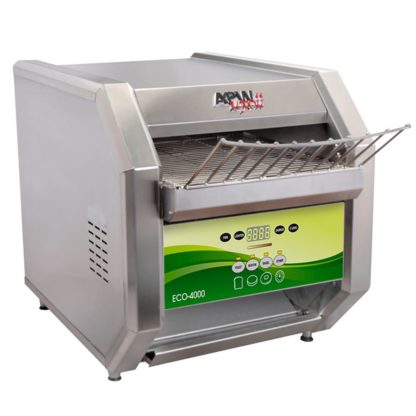 ECO-4000 Conveyor Toaster, electric, countertop, (500) slices/hour capacity, 1-1/2″H opening, electronic controls, top & bottom quartz heating elements, variable speed, air cooling system, stainless steel housing, 1″ adjustable legs, 2800 watts, NEMA 6-20P, ETL, ETL-Sanitation, 208v/60/1ph