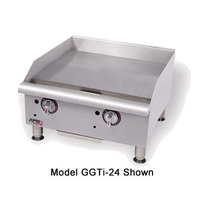 The APW GGT-36I countertop griddle has a stainless steel front and top skirt to offer durability and rust resistance. The sides and back panel have an aluminized steel construction for strength, and the plate is made of steel to provide quick heating. Because the standing pilot lights can be accessed through openings in the front, the panel doesn’t need to be removed. A 3-inch backsplash mounted on the rear prevents messes from splashing on the wall.