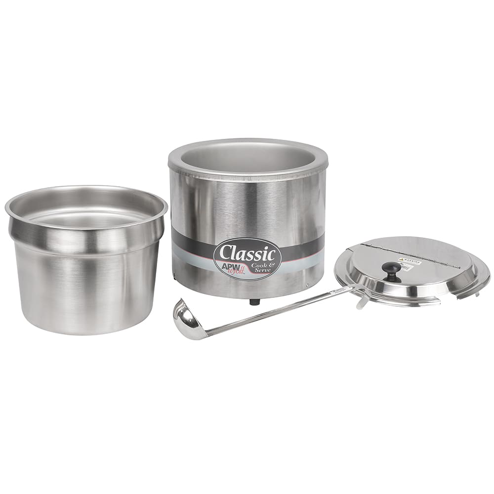 Food Pan Cooker/Warmer, electric, countertop, round, 11 quart capacity, wet & dry operation, thermostatic controls, includes: 11 quart inset, ladle & cover, stainless steel well & housing, 120v/60/1-ph, 1200w, 10.0 amps, NEMA 5-15P, cULus, CE