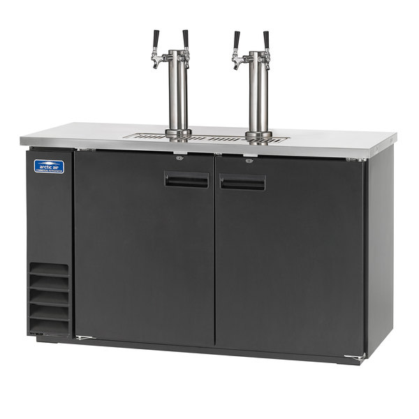 Serve perfectly-chilled beer with this Arctic Air ADD60R-2 black 2 double tap kegerator beer dispenser! This model comes standard with 2 double tap towers and holds up to 2 half kegs so you can serve a variety of beers from a compact kegerator. The interior of this beer dispenser is made of stainless steel and features a reinforced stainless steel floor to stand up to the impacts of loading and unloading the refrigerator, and the electronic thermostat keeps the interior of the unit between 33 and 41 degrees Fahrenheit. Bright, cool LED lights also illuminate the inside of the cabinet so your staff can easily see what they’re doing even in a dim bar environment.