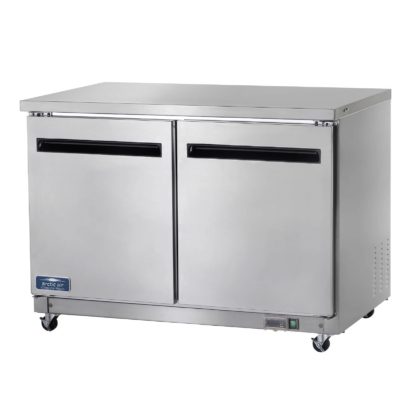 Keep all of your refrigerated ingredients and foods close at hand with the Arctic Air AUC48R 48″ undercounter refrigerator! This unit makes it easy to monitor temperatures with its electronic thermostat and LED display. A stainless steel front and sides give this refrigerator excellent durability, and it also comes with a heavy-duty worktop surface for added convenience. To make loading and unloading easy, its self-closing doors have a “stay open” feature when opened past 90 degrees.