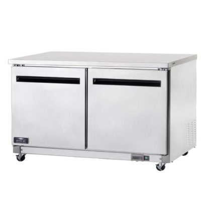 Keep all of your refrigerated ingredients and foods close at hand with the Arctic Air AUC60F 60″ undercounter worktop freezer! This unit makes it easy to monitor temperatures with its electronic thermostat and LED display. A stainless steel front and sides give this freezer excellent durability, and it also comes with a heavy-duty worktop surface for added convenience. To make loading and unloading easy, its self-closing doors have a “stay open” feature when opened past 90 degrees, and they each contain an internal heating element to remove condensation.