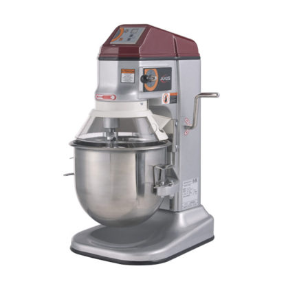 AXIS provides a reliable 12 qt Mixer for getting your mixing jobs done fast and efficiently. Featuring a 0.5 hp motor and dependable gear drive design which you have come to expect from AXIS. With 3 fixed speeds and an electronic digital timer you will have consistent results without ever over mixing, no matter who is running the unit. The standard accessories include a 12 qt stainless steel mixing bowl, an aluminum flat beater, a stainless steel wire whip, and an aluminum dough hook. AXIS has provided one of the most durable Three-speed geared transmissions by constructing it from heat-treated, hardened alloy steel gears and shaft, allowing for constant use without wearing down. Add this Mixer to your kitchen arsenal!