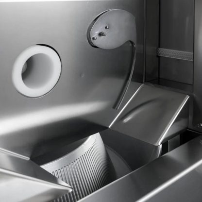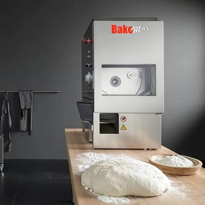 The Bakemax BMDD003 dough divider and rounder is an automatic model designed for high-volume dough processing. Equipped with a 44-liter dough hopper, it efficiently produces between 154 and 440 pounds of dough per hour. Its divider scaling range is adjustable from 21/2 to 84/5 ounces, enabling precise portioning. The unit’s adjustable cone, knife, and sensor are made of Teflon-coated stainless steel for durability and ease of cleaning. Built for longevity, this divider and rounder features stainless steel and anodized aluminum construction, resisting corrosion and wear in commercial settings.