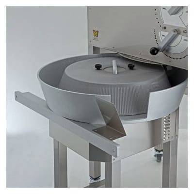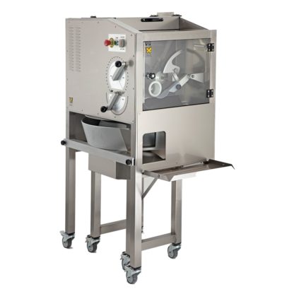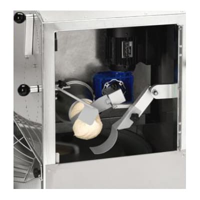 The Bakemax BMDD005 dough divider and rounder holds 44 liters and produces between 154 and 881 pounds of dough per hour depending on the application. For precise cutting between 6.3 and 22.9 ounces, this automatic machine measures with a special senor. Processing every portion 50 times, this unit ensures each ball comes out completely closed and rounded. Made of durable stainless steel and anodized aluminum, this machine is user friendly to disassemble, easing the cleaning process.