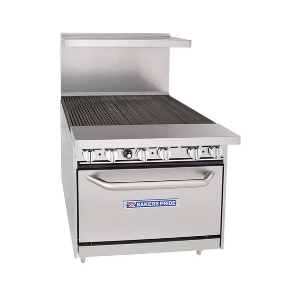 For optimum convenience and usability, choose this Bakers Pride Restaurant Series 36-BP-0B-BROLR36-S30 range for all of your restaurant cooking needs. With six 40,000 BTU burners beneath a 36″ charbroiler top, this gas range delivers even heat distribution every time, allowing you to grill up steaks, fish, and vegetables with perfectly seared exteriors and moist, juicy interiors. A unique anti-clogging pilot shield ensures that you get the most out of the open top burners and do not clog up burners with grease drippings.